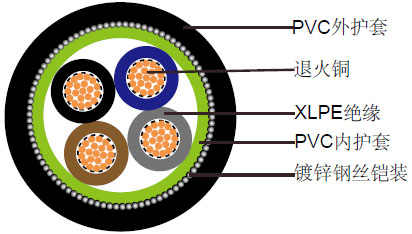 600/1000V XLPE绝缘,PVC护套,铠装电力缆 (2-5芯&多芯)
