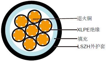 英标BS 7211 IEC 60502-1多芯450/750V XLPE绝缘LSZH护套电力缆主要应用于发电站、公共交通客运系统、机场、石化工厂、酒店、医院、高层建筑等的配线电缆。