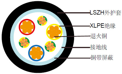 600/1000V XLPE绝缘, LSZH护套,铜带 屏蔽电力缆 (3C+3E)