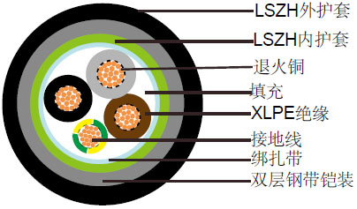 600/1000V XLPE绝缘,LSZH护套,双钢带铠装电力缆(3芯)