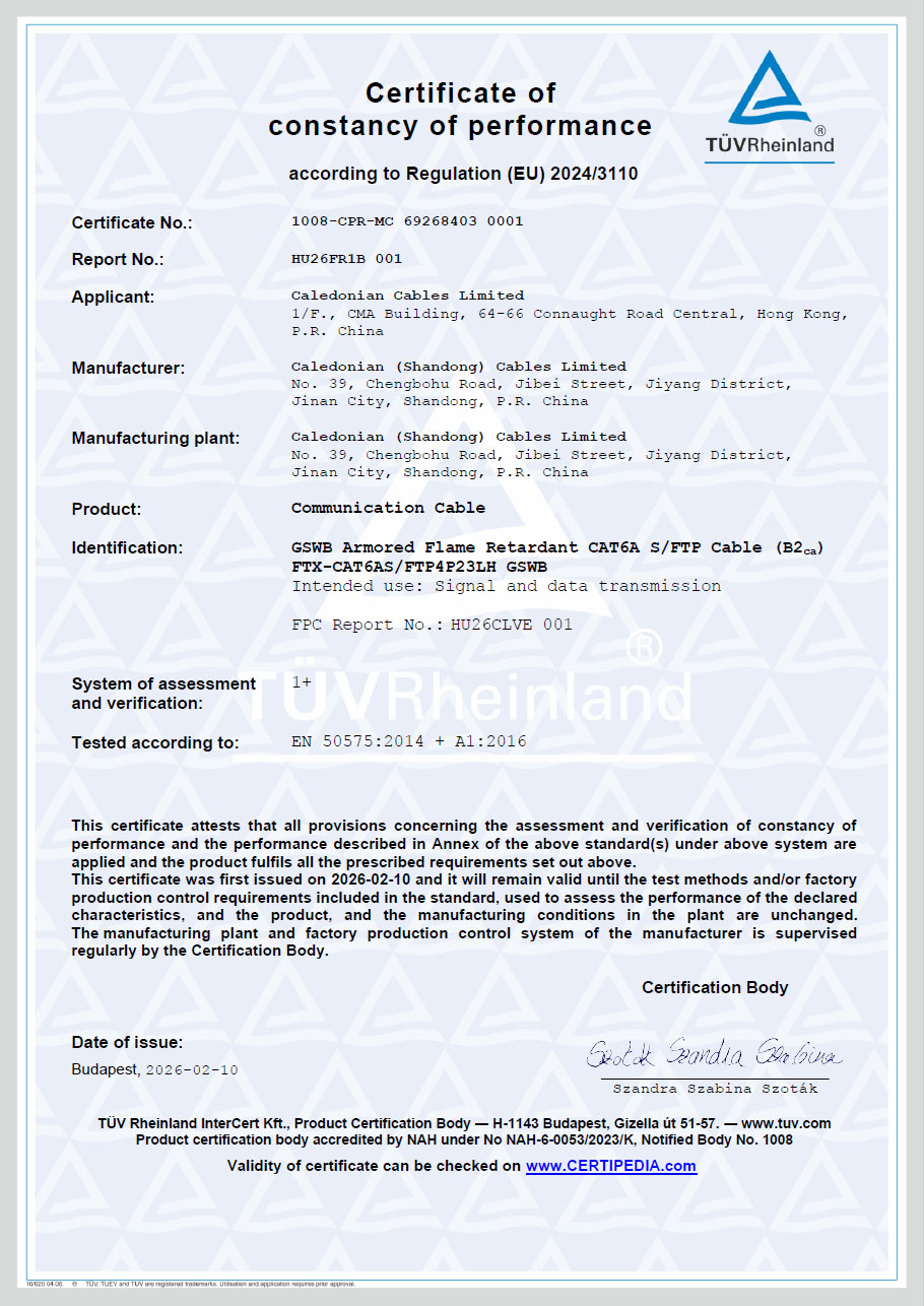 CPR-B2ca-CAT6A-GSWB Certificate