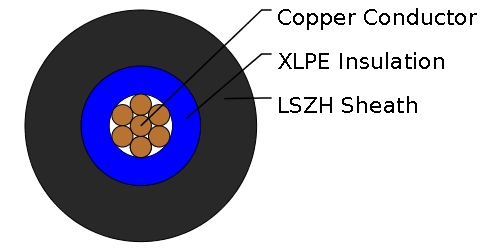 These XLPE insulated and LSZH sheathed cables are generally used for fixed installation. Suitable for building wiring, especially in areas where smoke and fume emissions may cause a potential threat to life but not for burial in the ground, either directly or in ducts.