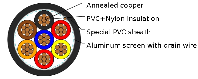 Drain Wire: 16 AWG (7w) tinned copper