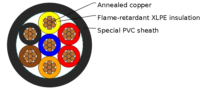 Conductor: Bare, annealed copper conforming to ASTM B3 and B8Insulation: Flame-retardant XLPE meeting the requirements for XHHW-2 per UL 44 and the