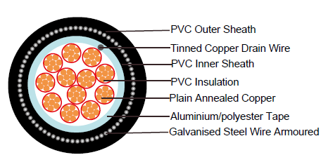 EN 50288-7 STANDARDS PVC Insulated, PVC Sheathed, Overall Screened & Armoured Instrumentation Cables (Multicore)