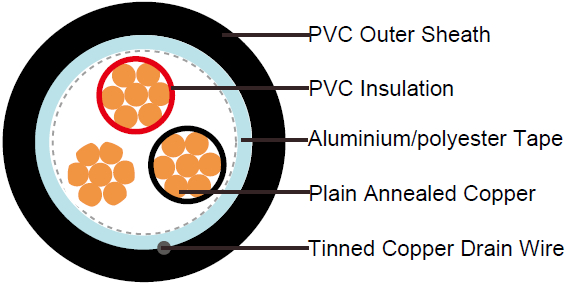 - Overall Screen: Aluminium/polyester tape with tinned copper drain wire, 0.5mm2