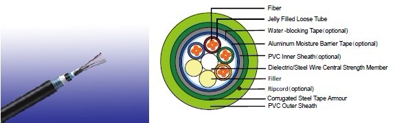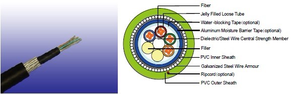 Inner Sheath (optional): The cable can be jacketed with either PE or Thermoplastic PVC inner sheath. PE is the preferred option in outdoor environment for water protection purpose.