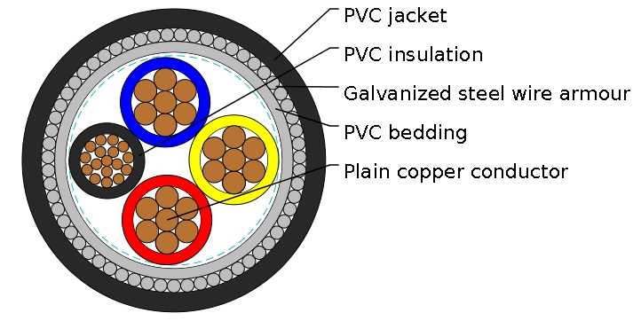 600/1000V,PVC Insulated Cables according to IEC 60502-1 Three core +1(armoured)