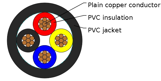 600/1000V,PVC Insulated Cables according to IEC 60502-1 Four core(unarmoured)