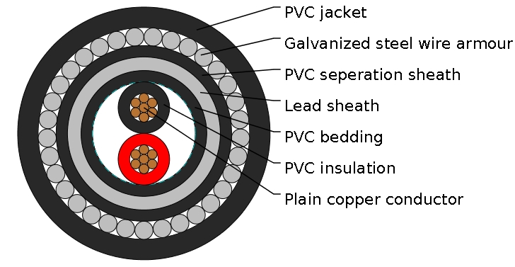600/1000V,PVC Insulated and Lead Sheathed Cables according to IEC 60502-1 Two core(armoured)