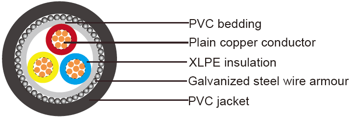 600/1000V,XLPE Insulated Cables according to IEC 60502-1 Three core(armoured)