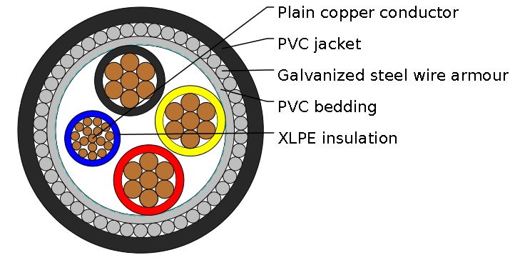 600/1000V,XLPE Insulated Cables according to IEC 60502-1 Three core+1(armoured)