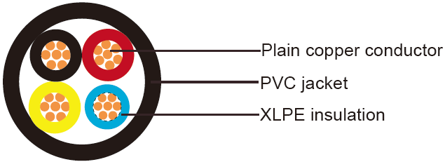 600/1000V,XLPE Insulated Cables according to IEC 60502-1 Three core +1(unarmoured)