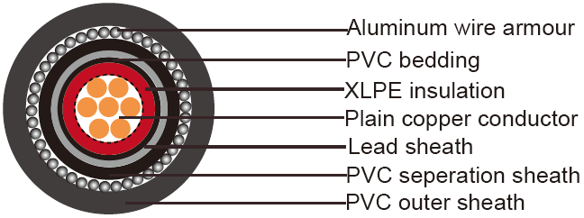 600/1000V,XLPE Insulated and Lead Sheathed Cables according to IEC 60502-1 Single core(armoured)