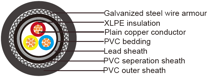 600/1000V,XLPE Insulated and Lead Sheathed Cables according to IEC 60502-1 Three core(armoured)