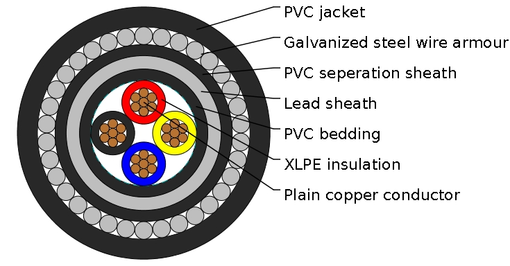 | Nominal Cross Section | Diameter of Conductor (Approx.) | Nominal Insulation Thickness | Nominal Inner Covering Thickness | Nominal Lead Sheath Thickness | Nominal Seperation Thickness | Nominal dia. of Steel wire armour | Nominal Sheath Thickness | Overall Diameter (Approx.) |