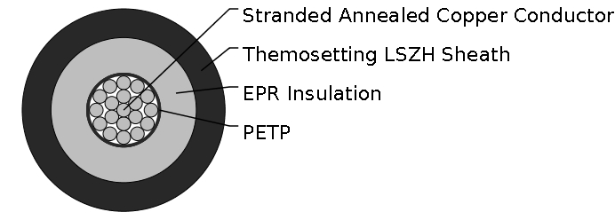 Sheath: Thermosetting LSZH compound SW4 to BS 7655-2.6 (formerly BS 7655-2.5 LRS1)with enhanced oil