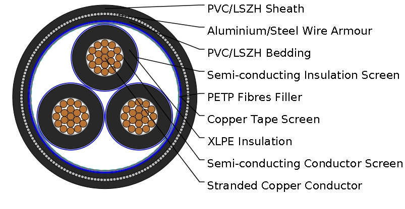 Aluminium wire armoured (AWA) (for single core cables) or steel wire armoured (SWA) (for multicore cables).