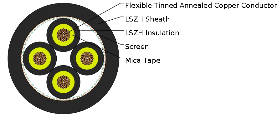 | EN 50200:2006 | Resistance to fire of unprotected small cable for use in emergency circuits. 5 classifications are defined: PH 15,30,60, 90 or 120 90 mins. |