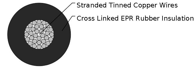 | Insulation | Cross linked EPR rubber type EI 107 |