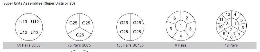 It is desirable for manufacturing purposes to combine four 25 pair groups into “super units” when cables have 900 pairs or more.