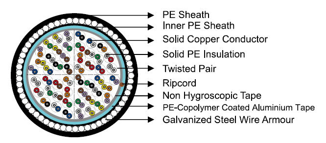 Solid PE Insulated, Steel Wire Armoured & LAP Sheathed (Alpeth) Air Core Cable to ICEA S-85-625