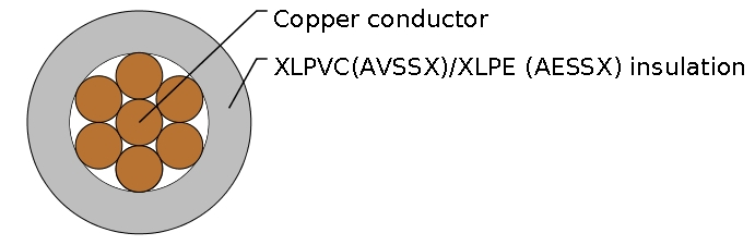 This XLPVC (XLPE) insulated single-core cable is used in electric system for automobile.