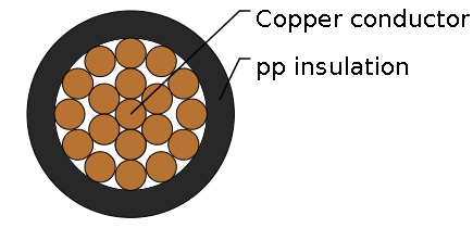 This PP insulated single-core cable is used for cable harnesses, Halogen-free.