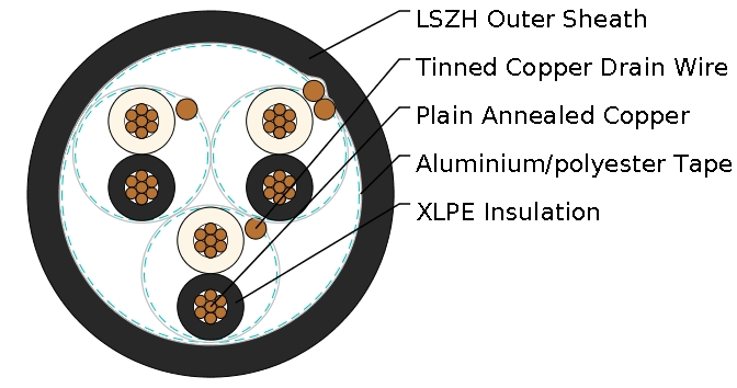 Outer Sheath: Thermoplastic LSZH compound type LTS3 as per BS 7655-6.1 (Thermosetting LSZH