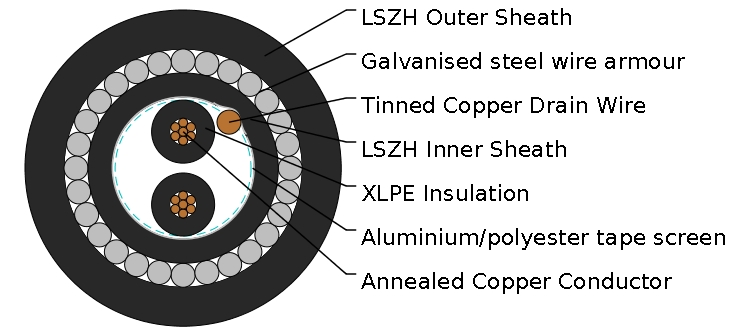 The LSZH sheathed cables are generally used for indoor installation and suitable for wet and damp areas. The galvanized steel wire armour provides excellent protection. Generally, the cables are used within industrial process manufacturing plants for communication, data and voice transmission signals and services. Also used for the interconnection of electrical equipment and instruments, the LSZH sheath can reduce toxic smoke and fume emission.STANDARDS
