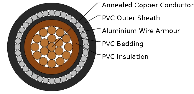 BS 6346-1 600/1000V PVC Insulated, PVC Sheathed Armoured Power Cables are mainly used in power stations, mass transit underground passenger systems, airports,