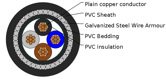 IEC 60502 600/1000V PVC Insulated, PVC Sheathed Armoured Power Cables are mainly used in power stations, mass transit underground passenger systems, airports,petrochemical plants, hotels, hospitals, and high-rise buildings.