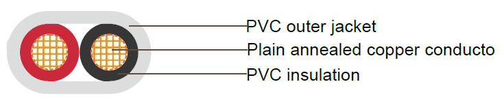 PVC Insulated, 2 Cores Flat Cables, 450/750V