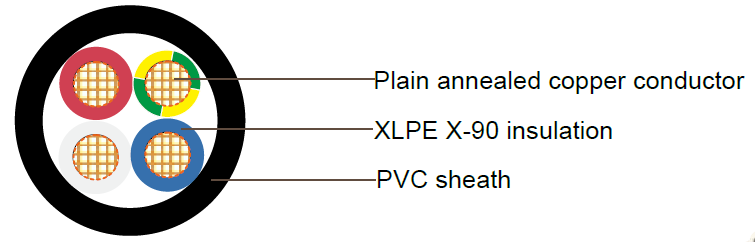 XLPE Insulated, PVC Sheathed 3 core+E Unarmored Cables 0.6/1kV