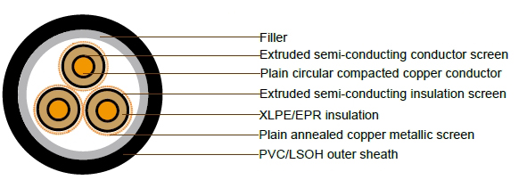 3.8/6.6kV Three Core Individual Screened & PVC Sheathed (Cu Conductor)