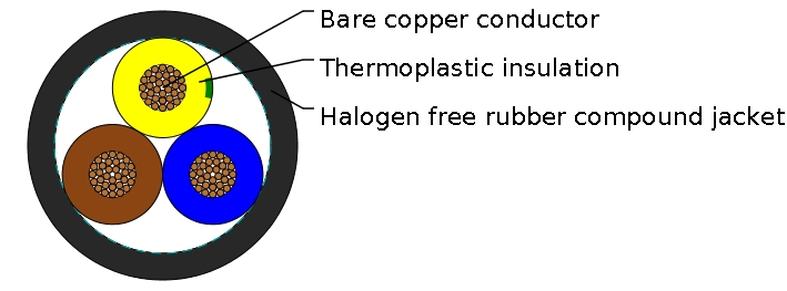 These cables may be used when halogen-free, low smoke and corrosive gas properties are required