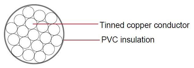 Stranded, tinned copper conductor |