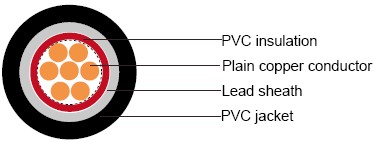 Assembly / Two, Three or Four insulated conductors are laid-up together with non-hygroscopic fillers Inner Sheath compatible with the insulation material and the assembly is bedded with an extruded layer of PVC. Lead Sheath Extruded lead Alloy Type "E" to BS 12548. Thickness of lead shall be as per IEC 60502-1. Cables with other thickness of Lead Sheath can also be provided based on