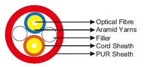 These flexible and robust cables are designed for industrial use, can use in wind turbines, medium distance communication, factory automation, etc. It contains two break-out units ?2.2mm, each with a large core step index multi mode fibre.