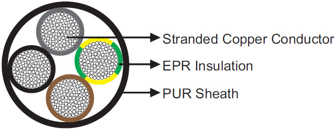 These cables are used as power cables for high mechanical stresses, in particular for abrasion and grinding stresses, suitable for use in dry, damp and wet rooms and outdoors, for connecting electric tools and lamps also on construction sites.