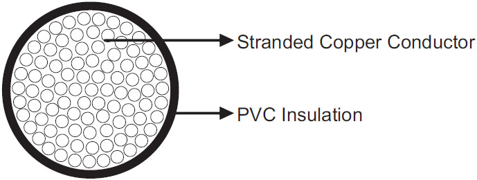 Stranded bare copper, class 5 according to DIN VDE 0295/HD 383/ IEC 60228 |