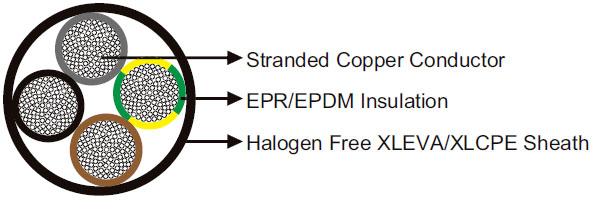 Special halogen free thermoset XLEVA. High mechanical performance special crosslinked EM8 synthetic halogen free rubber based on CPE can be offered upon request. |