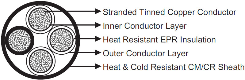 These cables are specifically designed for carrying medium voltage energy from the transformer in the nacelle to the bottom of the tower.